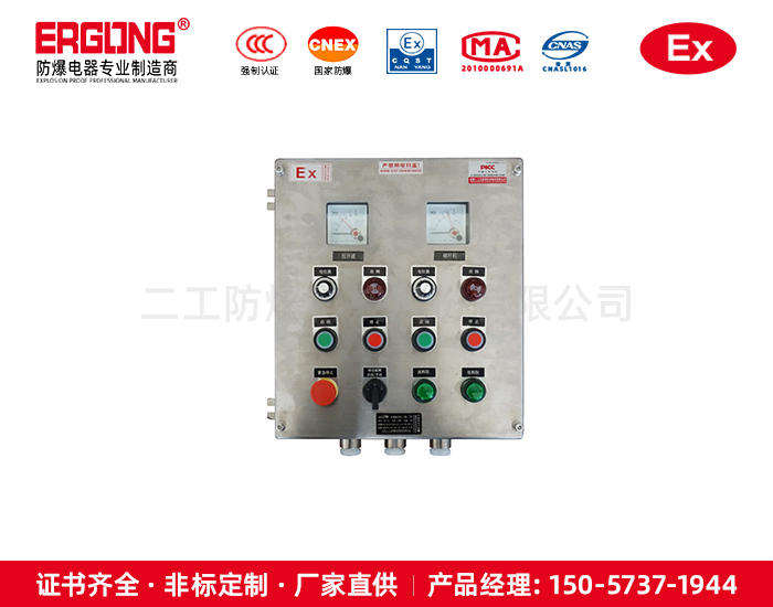 2. 本產(chǎn)品為改進(jìn)型防爆產(chǎn)品,內(nèi)部可裝防爆按鈕、防爆指示燈、防爆電流表、防爆開關(guān)、防爆電壓表等各種儀表和控制需要的部分;