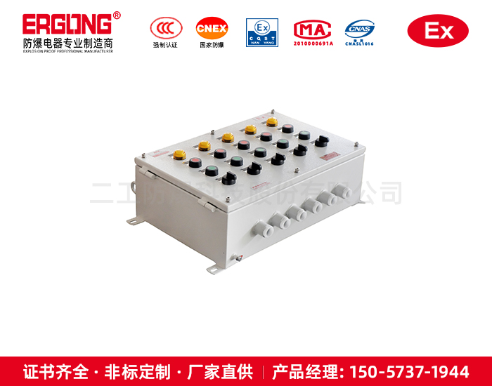 2. 本產品為改進型防爆產品,內部可裝防爆按鈕、防爆指示燈、防爆電流表、防爆開關、防爆電壓表等各種儀表和控制需要的部分;